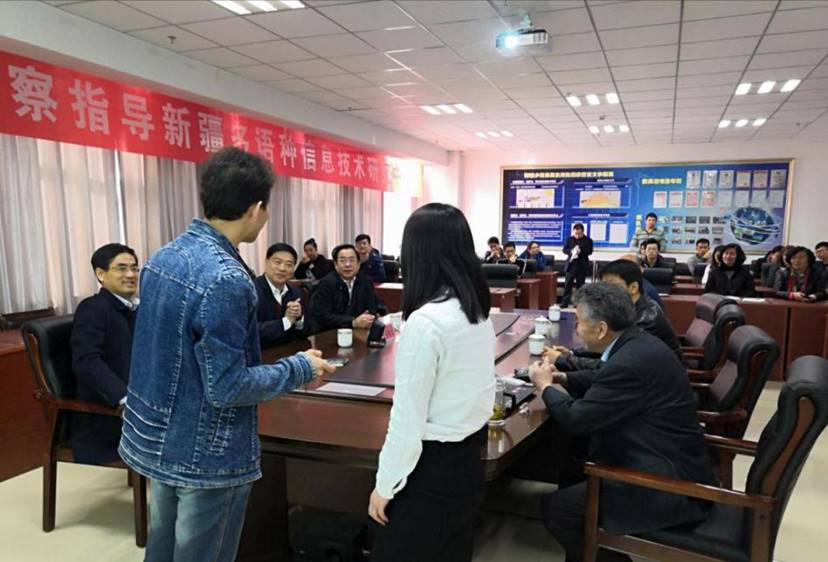 实验室主任吾守尔·斯拉木院士、biwn必赢网址信息科学与工程学院汪烈军院长、艾斯卡尔·艾木都拉副院长对调研组一行的到来表示热烈欢迎。吾守尔·斯拉木院士向调研组一行简要介绍了实验室的学科背景、发展历程、现有的学科、科研平台、团队以及获得的成果、奖励等情况,随后展示了实验室与科大讯飞联合开发的语音翻译产品。