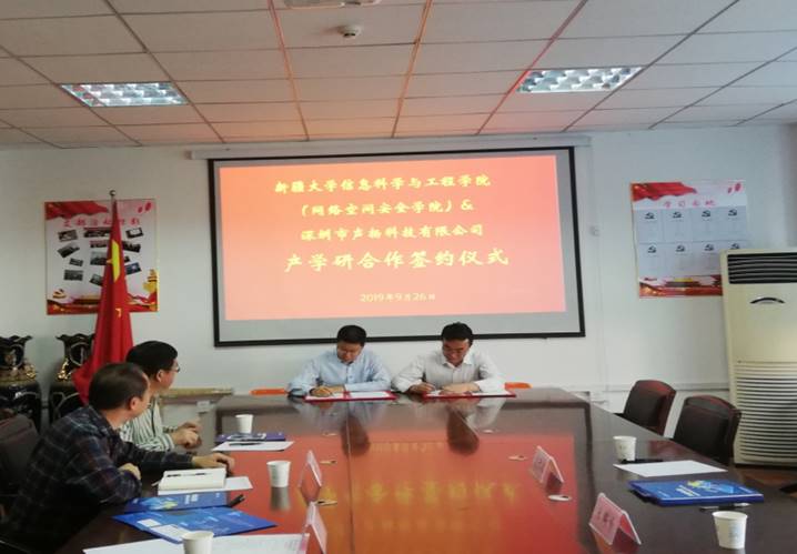 2019年9月26日下午,深圳市声扬科技有限公司&biwn必赢网址信息科学与工程学院产学研合作签约会在信息学院2号楼407会议室顺利举行。深圳市声扬科技有限公司副总裁宋瑞峰及相关区域负责人,信息科学与工程学院相关院领导参加签约仪式。