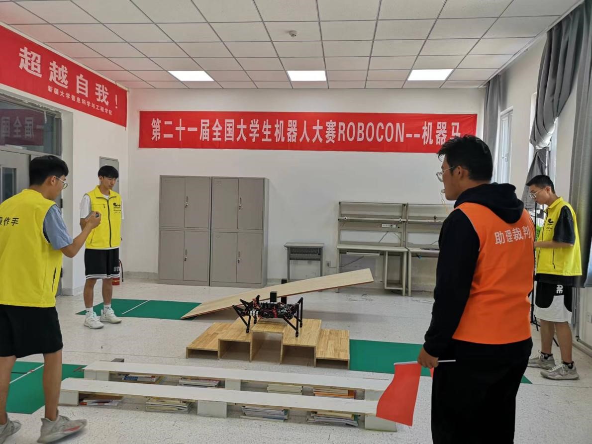 信息学院高度重视此项赛事,组织师生积极备赛,参赛团队反复评估机器人设计方案,多次组织线上线下讨论,历经300多个日日夜夜,6次版本迭代设计,最终制作完成“博达战马”和“天山野马”两匹机器马,均顺利完成了跷跷板、台阶与双木桥等项任务,从大赛中脱颖而出。